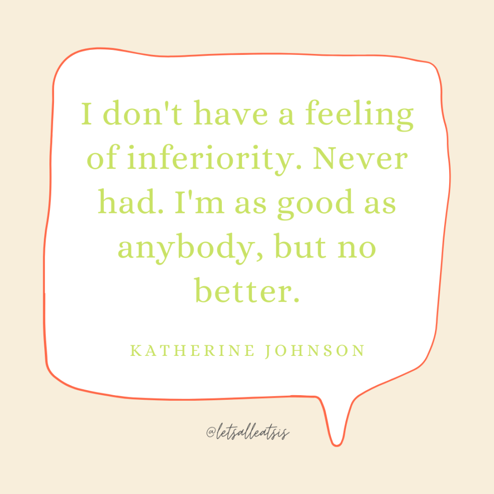 - “I don’t have a feeling of inferiority. Never had. I’m as good as anybody, but no better.” – Katherine Johnson